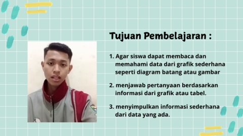 Tujuan Pembelajaran : 1. Agar siswa dapat membaca dan memahami data dari grafik sederhana seperti diagram batang atau gambar 2. menjawab pertanyaan berdasarkan informasi dari grafik atau tabel. 3. menyimpulkan informasi sederhana dari data yang ada.