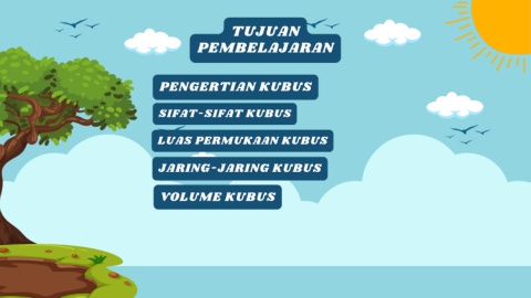 TUJUAN PEMBELAJARAN PENGERTIAN KUBUS SIFAT-SIFAT KUBUS LUAS PERMUKAAN KUBUS JARING-JARING KUBUS VOLUME KUBUS