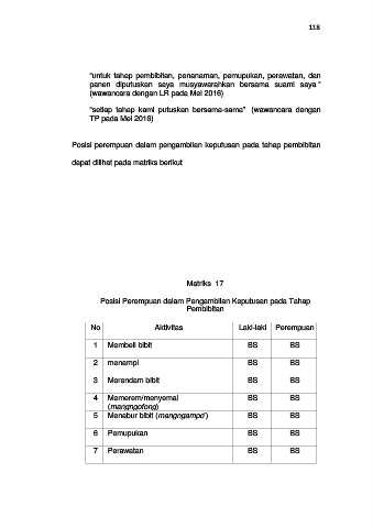 Posisi perempuan dalam pengambilan keputusan pada tahap pembibitan