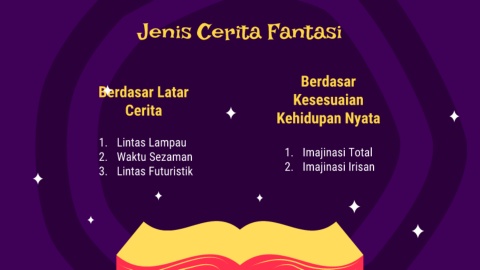 Jenis Cerita Fantasi Berdasar Berdasar Latar Kesesuaian Cerita Kehidupan Nyata 1. Lintas Lampau 2. Waktu Sezaman 1. Imajinasi Total 3. Lintas Futuristik 2. Imajinasi Irisan