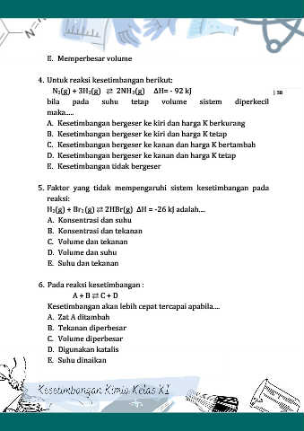 6. Pada reaksi kesetimbangan :
