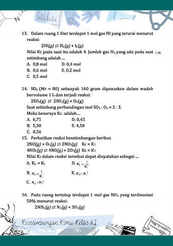 13. Dalam ruang 1 liter terdapat 1 mol gas HI yang terurai menurut
