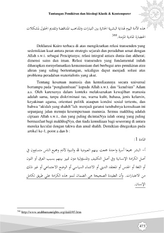 Deklarasi Kairo terbaca di atas mengikrarkan relasi transenden yang