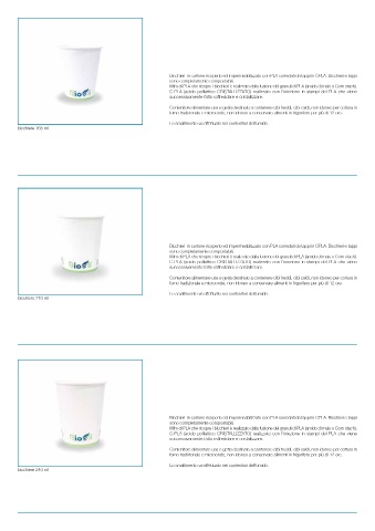 Bicchieri in cartone ricoperto ed impermeabilizzato con PLA corredati da tappi in CPLA. Bicchieri e tappi