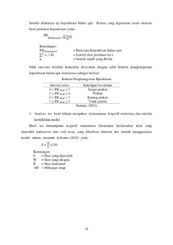 Setelah dilakukan uji kepraktisan bahan ajar. Rumus yang digunakan untuk mencari