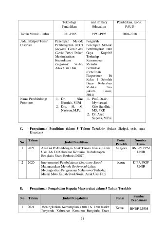 C. Pengalaman Penelitian dalam 5 Tahun Terakhir (bukan Skripsi, tesis, atau