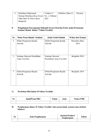 F. Pengalaman Penyampaian Makalah Secara Oral dan Poster pada Pertemuan/