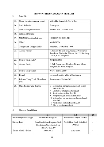 RIWAYAT HIDUP ANGGOTA PENELITI