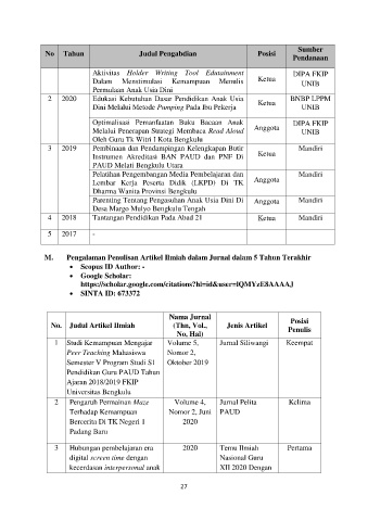M. Pengalaman Penulisan Artikel Ilmiah dalam Jurnal dalam 5 Tahun Terakhir