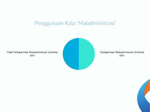Penggunaan Kata 'Maladministrasi' Tidak Terdapat Kata 'Malaadministrasi' (9 berita) Terdapat kata 'Malaadministrasi' (9 berita) 50% 50%