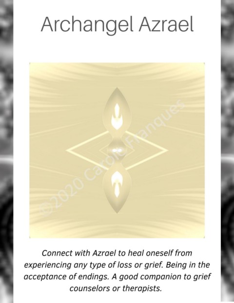 Archangel Azrael Connect with Azrael to heal oneself from experiencing any type of loss or grief. Being in the acceptance of endings. A good companion to grief counselors or therapists.