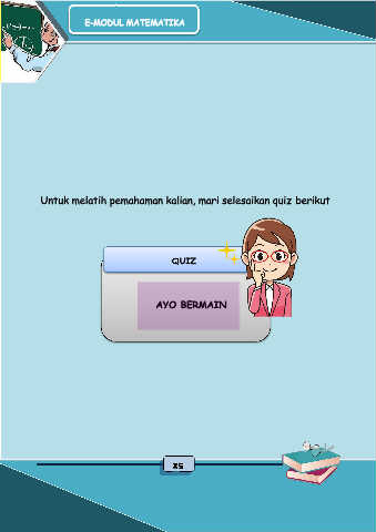 E-MODUL MATEMATIKA Untuk melatih pemahaman kalian, mari selesaikan quiz berikut QUIZ AYO BERMAIN