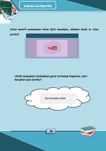 E-MODUL MATEMATIKA Untuk melatih pemahaman kalian lebih mendalam, silahkan simak isi video berikut! Untuk memahami kedudukan garis terhadap lingkaran, mari kerjakan quiz berikut: Ayo bermain disini