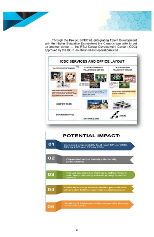Through the Project INNOTAL (Integrating Talent Development with the Higher Education Ecosystem) the Campus was able to put up another center — the IFSU Career Development Center (ICDC) approved by the BOR, established and operationalized . 19