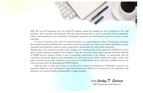 institution. With the many developments and projects lined-up for 2021, we are praying for your cooperation and