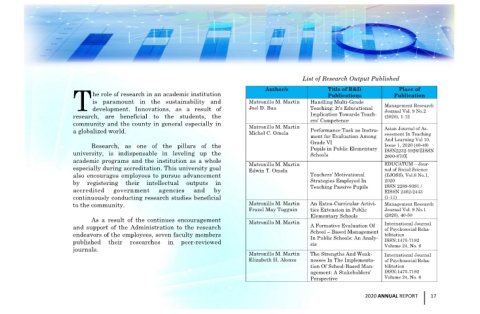to the community. Matronillo M. Martin An Extra-Curricular Activi- Management Research