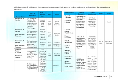Aside from research publication, faculty researchers presented their works in various conferences to disseminate the result of their