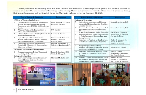 order to promote IFSU as a reservoir of knowledge in the country. Hence, faculty members submitted their research proposals during