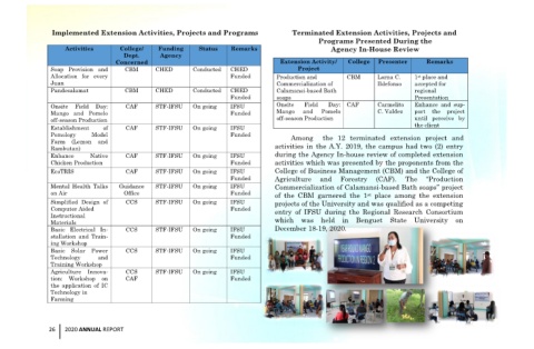 Implemented Extension Activities, Projects and Programs Terminated Extension Activities, Projects and
