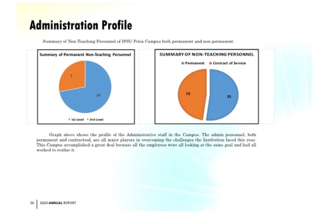 Graph above shows the profile of the Administrative staff in the Campus. The admin personnel, both