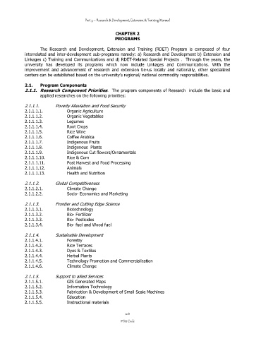 interrelated and inter-development sub-programs namely: a) Research and Development b) Extension and