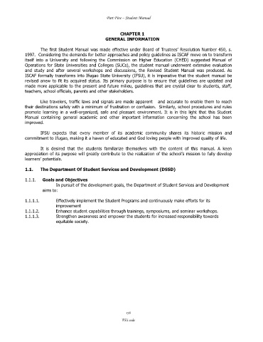 ISCAF formally transforms into Ifugao State University (IFSU), it is imperative that the student manual be