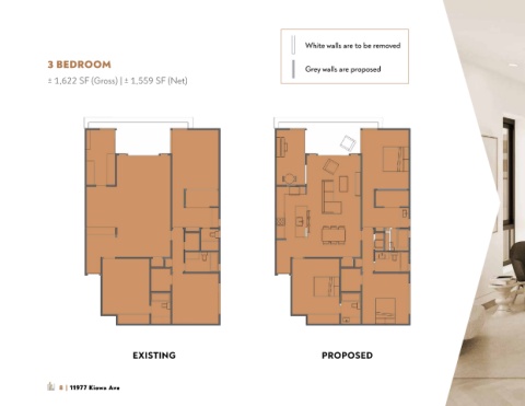 White walls are to be removed 3 BEDROOM Grey walls are proposed ± 1,622 SF (Gross) | ± 1,559 SF (Net) EXISTING PROPOSED 8 | 11977 Kiowa Ave