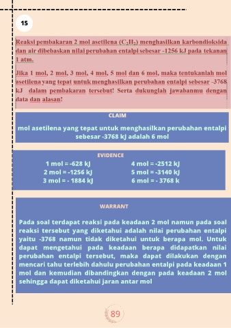 mol asetilena yang tepat untuk menghasilkan perubahan entalpi