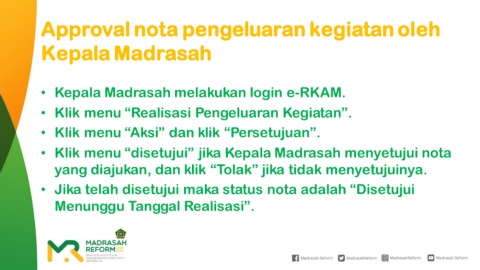 • Klik menu “disetujui” jika Kepala Madrasah menyetujui nota