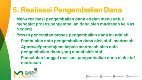 – Pembuatan nota pengembalian dana oleh staf madrasah