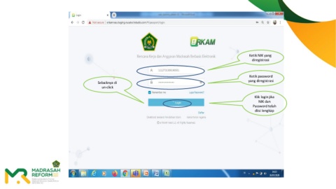 Ketik NIK yang diregistrasi Ketik password Sebaiknya di yang diregistrasi un-click Klik login jika NIK dan Password telah diisi lengkap