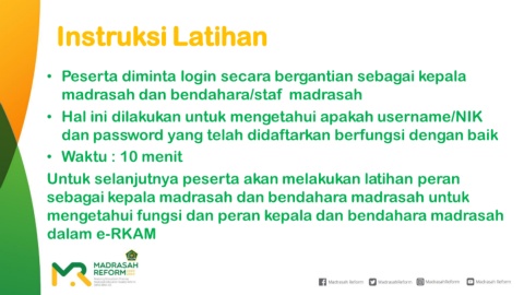 • Peserta diminta login secara bergantian sebagai kepala
