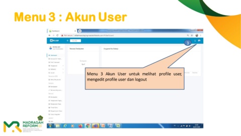 Menu 3 : Akun User 3 Menu 3 Akun User untuk melihat profile user, mengedit profile user dan logout