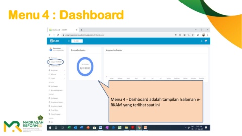 Menu 4 : Dashboard Menu 4 - Dashboard adalah tampilan halaman e- RKAM yang terlihat saat ini