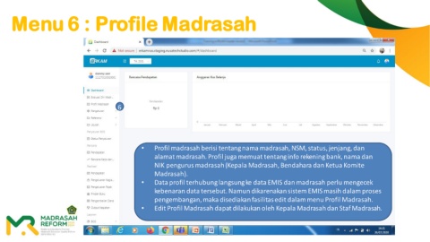 • Data profil terhubunglangsungke data EMIS dan madrasah perlu mengecek