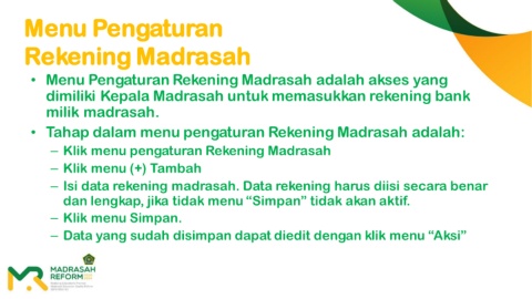 • Menu Pengaturan Rekening Madrasah adalah akses yang