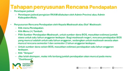 • Penyusunan Rencana Pendapatan oleh Kepala Madrasahatau Staf Madrasah: