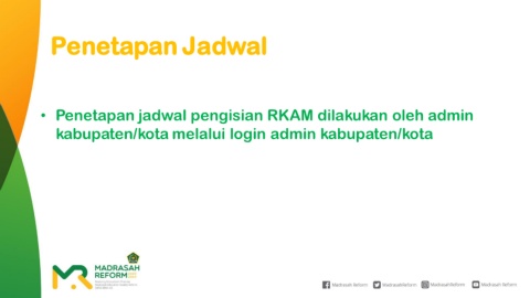 Penetapan Jadwal • Penetapan jadwal pengisian RKAM dilakukan oleh admin kabupaten/kota melalui login admin kabupaten/kota