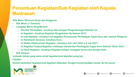 – Isi Kegiatan Output Kegiatan: misalnya Jadwal dan Pembagian Tugas Guru Selama Tahun 2021.