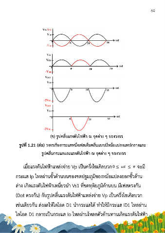 รูปที่ 1.21 (ตอ) วงจรเรียงกระแสหนึ่งเฟสเต็มคลื่นแบบมีหมอแปลงแทปกลางและ