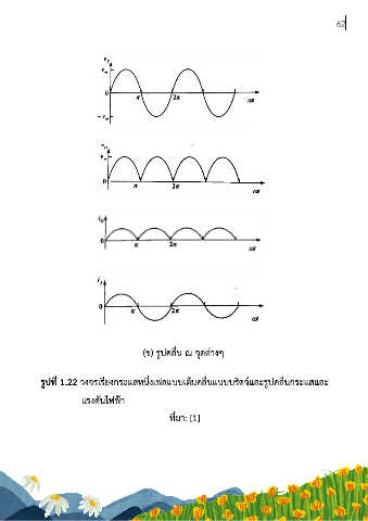 (ข) รูปคลื่น ณ จุดตางๆ รูปที่ 1.22 วงจรเรียงกระแสหนึ่งเฟสแบบเต็มคลื่นแบบบริดจและรูปคลื่นกระแสและ แรงดันไฟฟา ที่มา: [1]