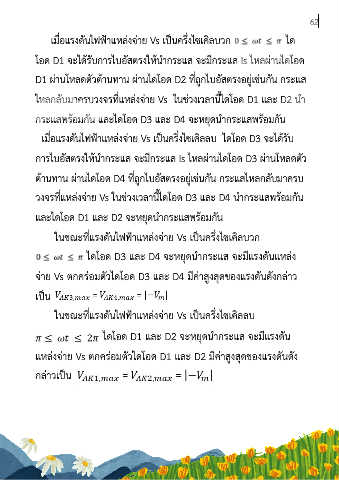 เมอแรงดนไฟฟาแหลงจาย Vs เปนครงไซเคลลบ ไดโอด D3 จะไดรบ
