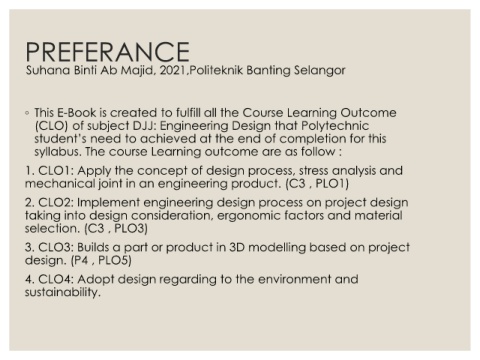 (CLO) of subject DJJ: Engineering Design that Polytechnic