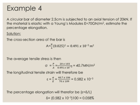 the material is elastic with a Young’s Modules E=70GN/m , estimate the