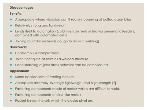 Aerospace assembly–riveting is lightweight and high strength [2].