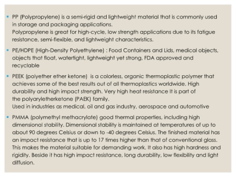 ▪ PP (Polypropylene) is a semi-rigid and lightweight material that is commonly used