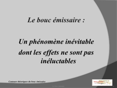 Le bouc émissaire : Un phénomène inévitable dont les effets ne sont pas inéluctables Contours théoriques du bouc émissaire Le bouc émissaire 4