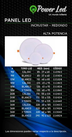 PANEL LED INCRUSTAR - REDONDO ALTA POTENCIA 110923 110924 111224 111823 111824 111840 112423 112424 112440 113623 113624 113640 114824 10