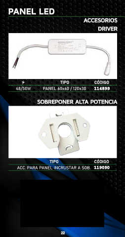 PANEL LED ACCESORIOS DRIVER 114899 SOBREPONER ALTA POTENCIA 119090 Logo vídeo autorep. 22