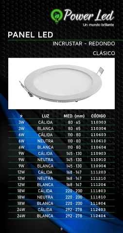 PANEL LED INCRUSTAR - REDONDO CLÁSICO 110303 110304 110603 110610 110604 110903 110910 110904 111203 111210 111204 111803 111810 111804 112403 112404 9